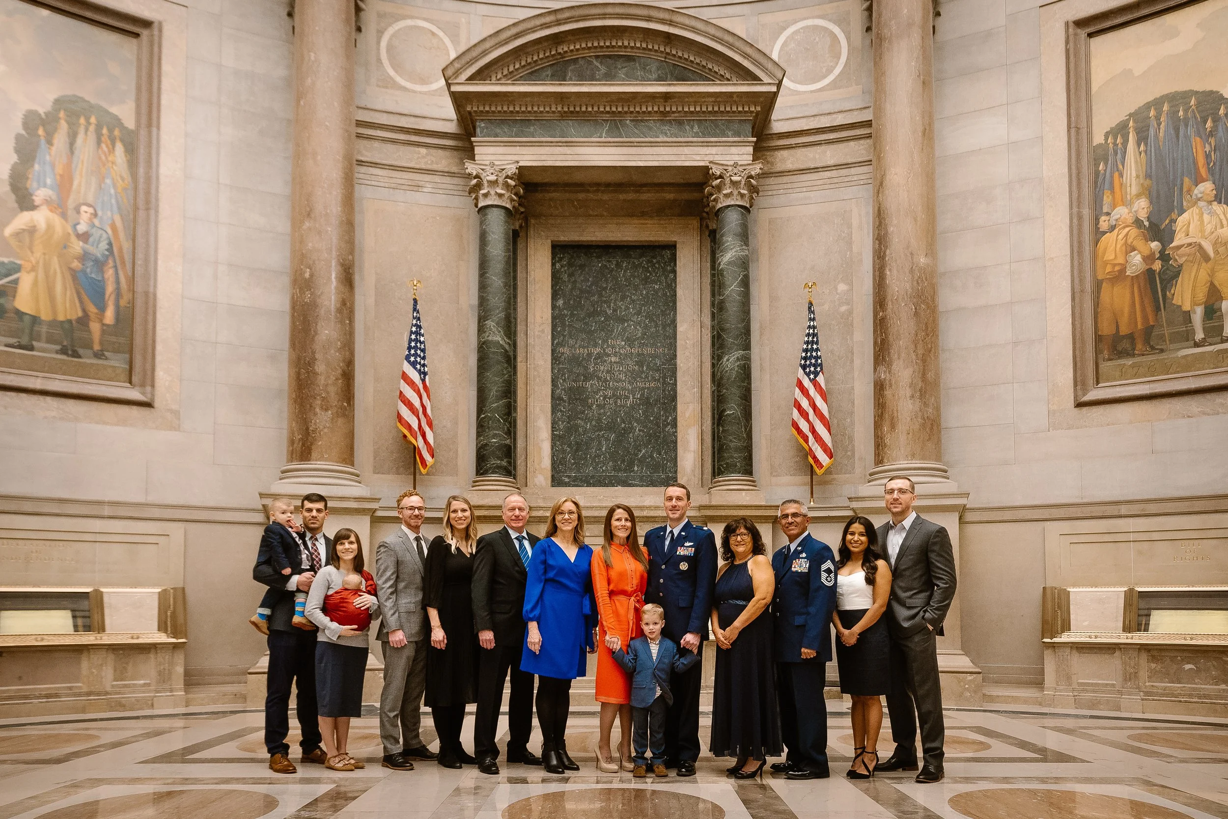 WORTH EVERY PENNY! We were honored to have Brian Walsh photograph our promotion ceremony at the National Archives in Washington, DC. As a fellow military spouse, we really liked the enthusiasm and patriotism he appeared to share about our event. We also appreciated his experience and professionalism which made the logistics of our big day so much easier! He was so patient with our large group, and he didn't even mind helping us coordinate all our outfits! He took wonderful pictures of the occasion itself, and we were so impressed by his creative eye, the compositions he came up with for his shots, and the sweet and subtle moments he was able to capture. Throughout the whole process, we enjoyed Brian's hands-on approach; it is obvious he takes pride in all aspects of his work. He delivered beautiful final products to us: our large framed print and matted album are heirlooms we will cherish forever.